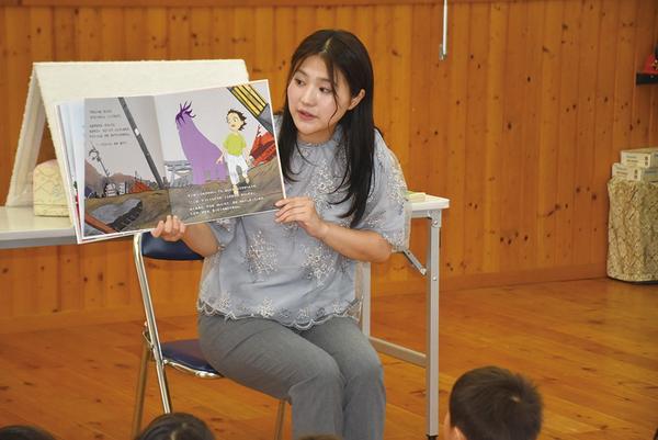 【下松】yab絵本「もう のこさんよ」 平田保育園で玉野アナが読み聞かせ