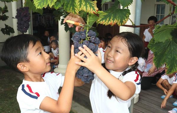 【下松】園内のブドウに「おいしい!」 愛隣幼児学園で収穫祭
