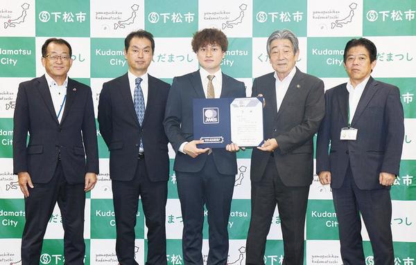 高齢者のスポーツ・文化・福祉の祭典、第37回全国健康福祉祭ぎふ大会(ねんりんピック岐阜2025)に下松市から出場する選手の激励会が3日、市役所で開かれ、選手4...