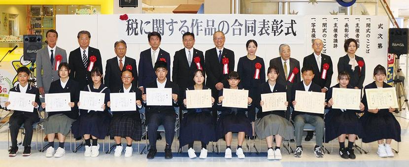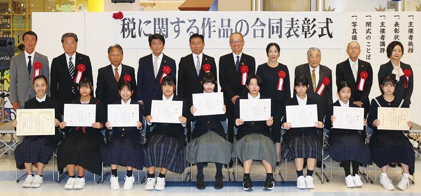 徳山税務署管内の周南市、下松市の児童生徒が応募した「税に関する作品の合同表彰式」が11月29日、下松市のゆめタウン1階海の広場で開かれ、入賞、入選した小学6年...