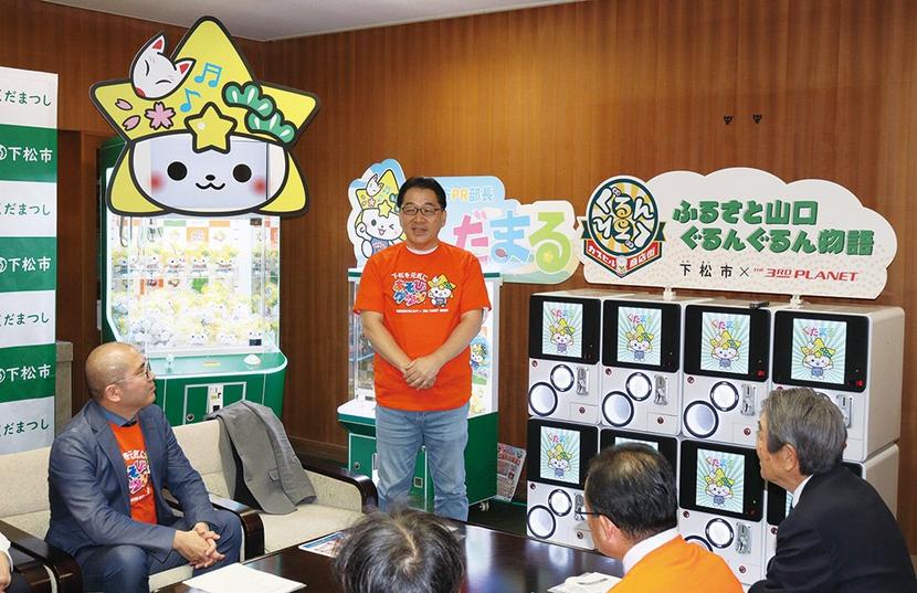 地域下松市全国にアミューズメント施設を展開する周南市新地町の㈱サードプラネット(志野一夫代表取締役社長)と下松市は15日、「シティプロモーションに関する協定」を締結した。同社は来年2月13日(金)に市マスコットキャラクター「くだまる」グッズのクレーンゲーム機やカプセルトイ機を下松タウンセンター内に開設し、将来は「くだまる」の全国展開も視野に入れる。