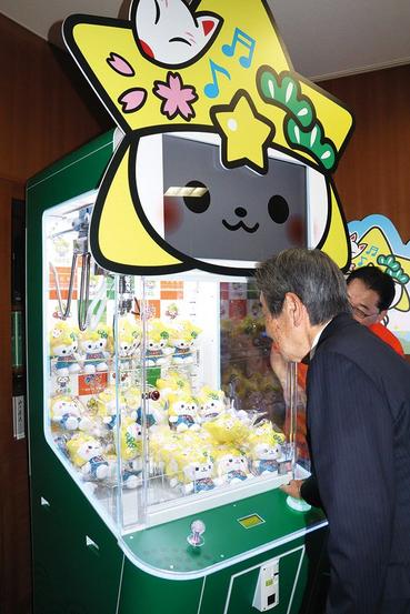 クレーンゲーム機やカプセルトイ機は下松タウンセンター内の星プラザ3階に「くだまるコーナー」を設けて設置する。星プラザを管理する下松商業開発㈱の金織平浩代表取締役社長は「幅広い皆さんに喜んでいただけるコーナーにしたい」と意気込みを披露した。