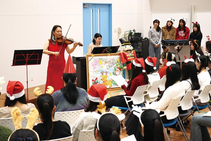 歯科衛生士を育成している下松市東柳の下松デンタルアカデミー専門学校(栗原英見学校長、50人)のクリスマス会が19日に開かれ、上土居宏予さんのバイオリンと守田諭...