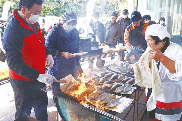 【下松】“肉厚アジ”の炭火焼きに舌鼓 まるごと笠戸島が盛況