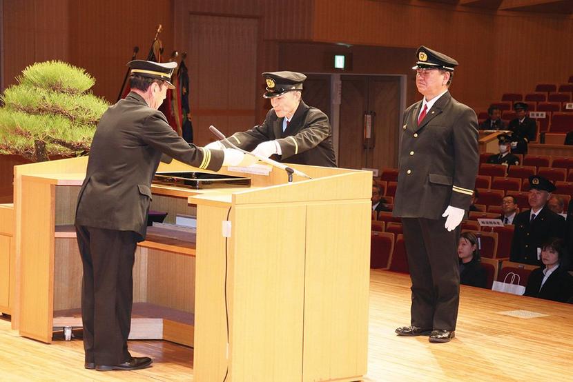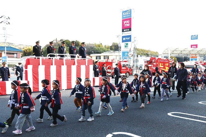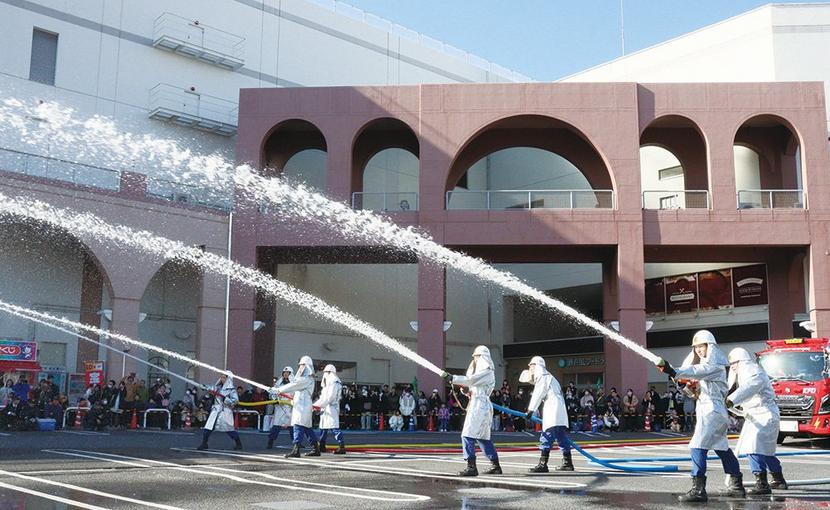 下松市の消防出初め式が10日、スターピアくだまつ大ホールとゆめタウン下松第1駐車場ゆめステージで開かれ、市消防団員や市消防本部の消防士ら約300人が今年一年の...
