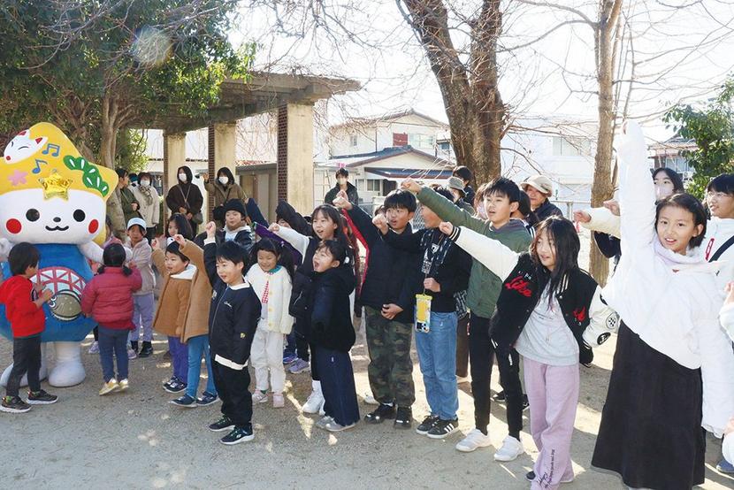• ガンバロー三唱を叫ぶ子どもたち