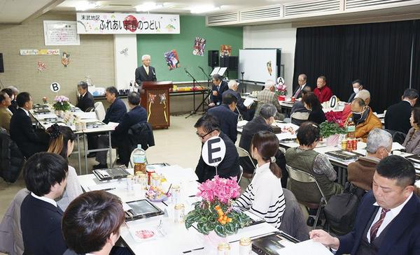 下松市の末武地区ふれあい新春のつどいが12日、末武公民館で開かれ、地区内の各種団体役員ら52人が新年のあいさつを交わし合って交流を深めた。 同地区は宅地開発...