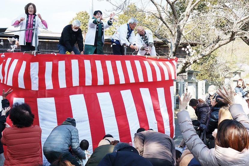 【下松】餅まきで「こっち!こっち!」 妙見宮鷲頭寺で節分祭