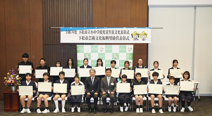 下松市教委の小中学生の児童生徒文化表彰式と、高校生の芸術文化振興奨励賞の表彰式が8日、ほしらんどくだまつで開かれ、児童生徒文化表彰は14人と1団体▽芸術文化振...
