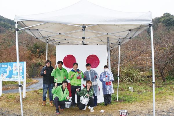 【下松】名物「サイコロトイレ」をきれいに 下松商議所青年部会員ら塗り直し作業