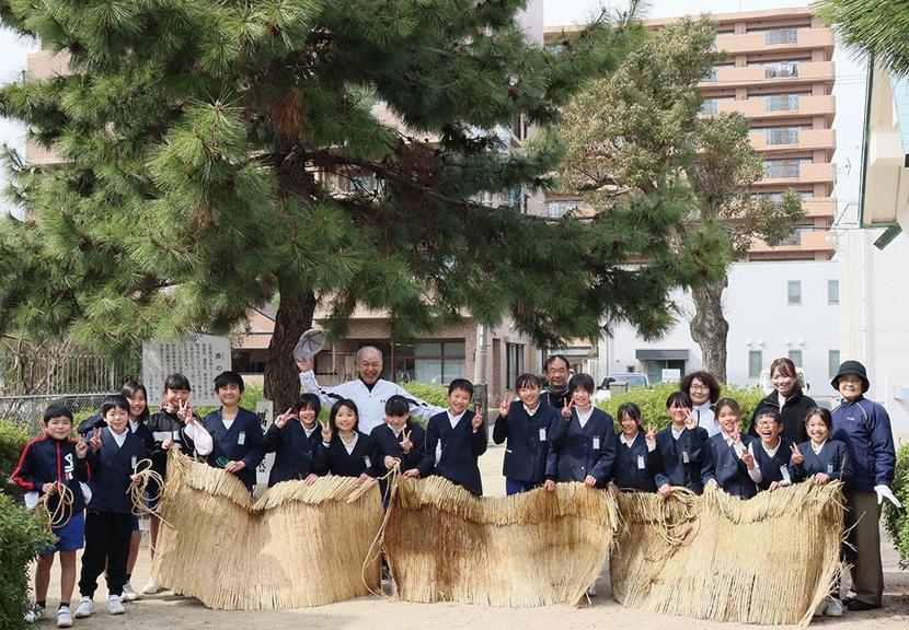 下松市北斗町の金輪公園で9日、昨年11月18日に“鼎(かなえ)の松”に巻いたわら製の“こも”を外す作業があり、下松小の3〜5年の運営委員16人が参加した。 ...