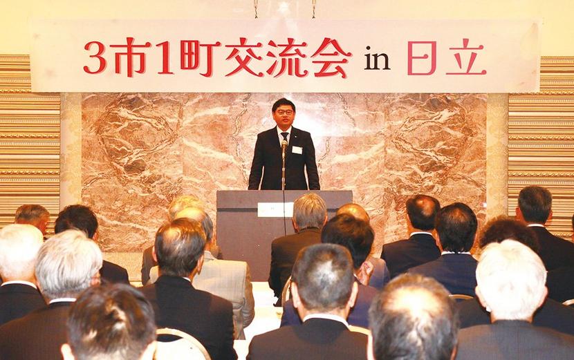 左から増山栃木市副市長、国井市長、細越小坂町長、𠮷山日立市副市長