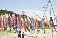 【光】砂浜に140匹泳ぐ 5月8日まで・虹の鯉のぼりプロジェクト
