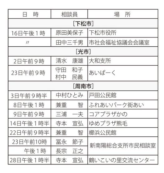 国の行政活動全般に関する苦情などの相談を受け、相談者へ助言や関係機関へ改善の申し入れをする行政相談委員による相談所が県内では、2月は延べ66カ所で開かれる。こ...
