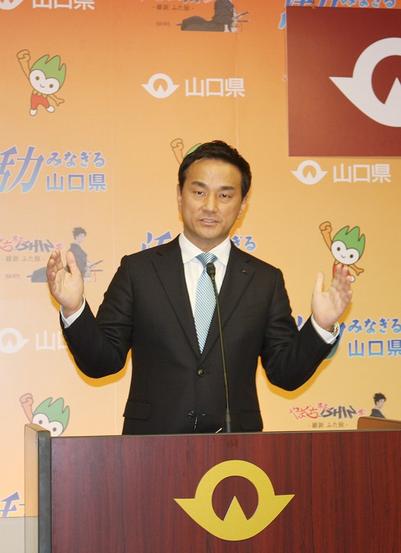 予算案を説明する村岡知事