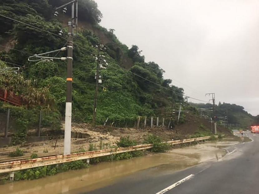 光、下松市境の土砂崩れ(読者提供)=7日午前6時半