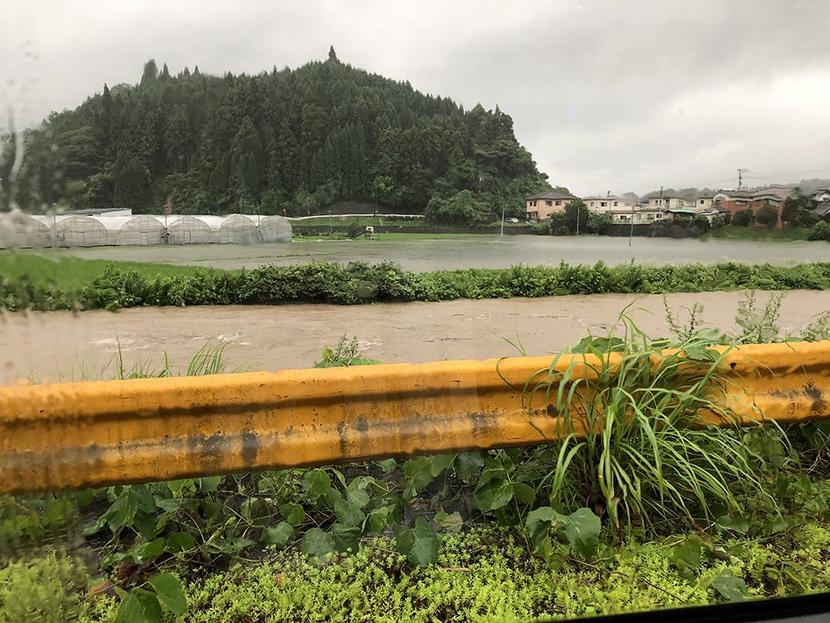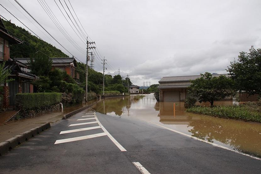冠水した県道=7日午後2時20分、光市立野
