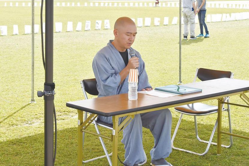 桝野さんは病院の患者や患者の家族、遺族、災害の被災地の人たちから傾聴するなど臨床宗教師の役割を説明し、がんによって沈んだ気持ちを持ち上げるには経験を学び、自己を見つめるなど心を鍛えることと、薬や情報などの〝道具〟が必要だが、その中に宗教があってもいいのではと話した。