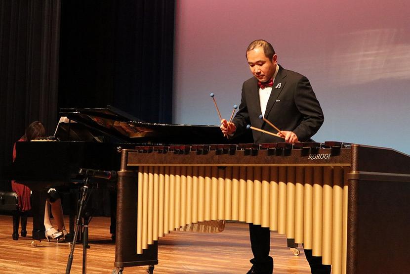 マリンバを演奏する重田さん