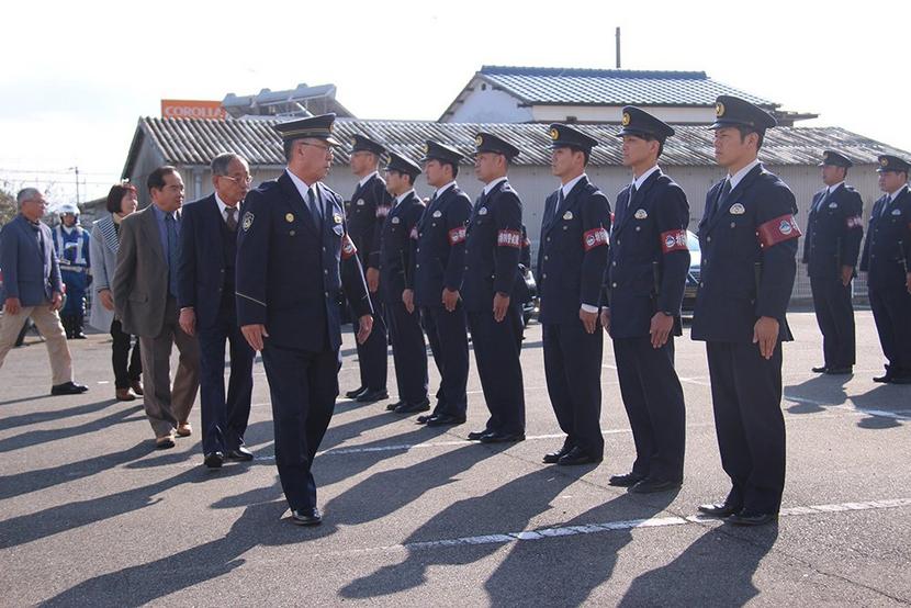 署員の服装を点検する木村署長ら