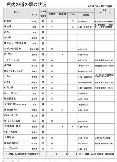 県道路整備課のまとめでは県内に24カ所ある道の駅に閉鎖や時間短縮の動きが広がっている。22日までに19カ所で5月10日(日)までの間の閉鎖や時間短縮の営業など...
