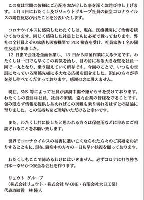 周南市栗屋奈切のプラント工事業、㈱リュウト(林隆人社長)は8日、林社長と社員、家族、知人の計6人が新型コロナウイルスに感染したことで、県周南保健センターに社名...