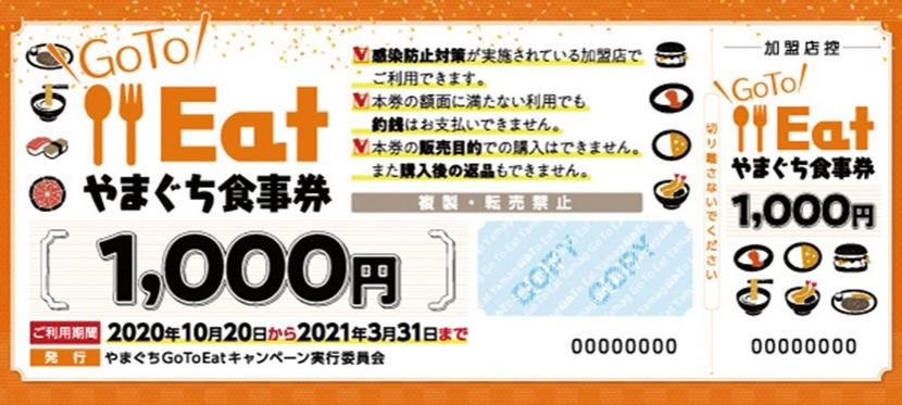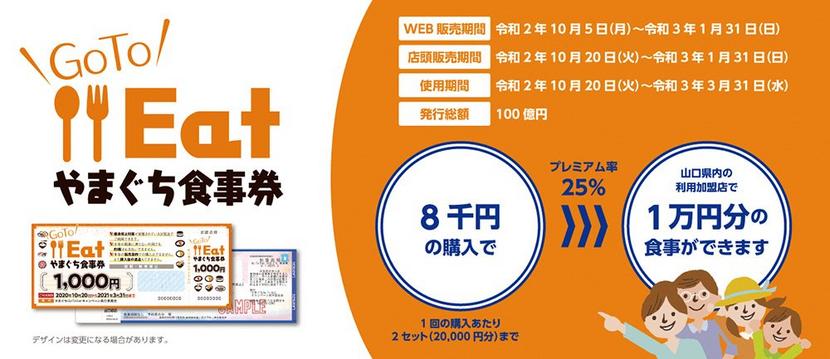 地域その他新型コロナウイルスの感染拡大で影響を受けている飲食店の支援として、県内でも10月5日のインターネット販売を皮切りに20日から店頭でも販売を開始した「Go To Eatやまぐち食事券」。