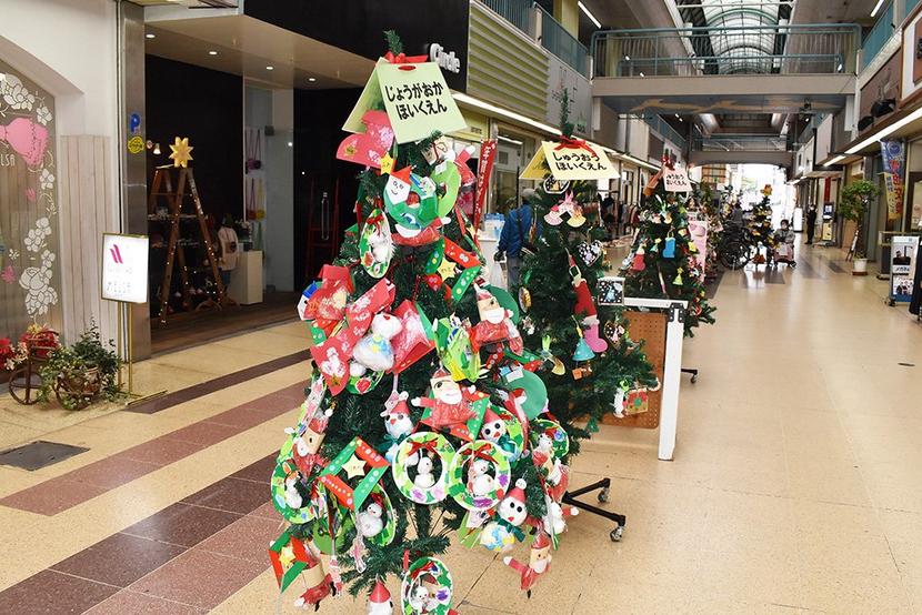 周南市の徳山商店街の銀南街に27日から幼稚園、保育園児が飾った“天使のツリー〟25本が並んでいる。25日(金)まで展示して歳末の商店街を盛り上げる。 この...