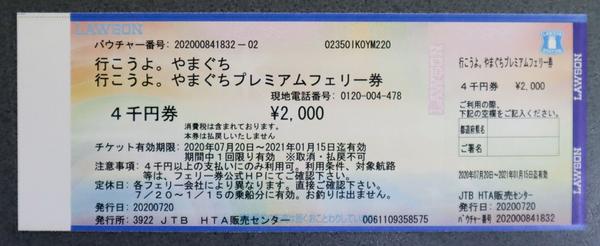 新型コロナウイルスの感染拡大の影響で業績が落ち込む観光業の支援を目的として、県が7月20日から5万枚を売り出した「行こうよ。やまぐちプレミアムフェリー券」が4...