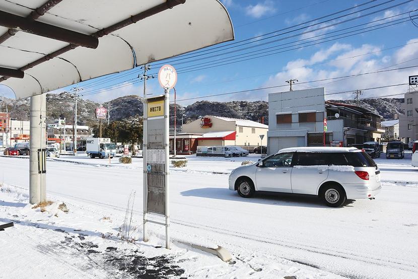 雪景色となった市街地=8日午前7時、周南市古川町など