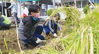 実りの秋いっぱいに 豊井小・校内の田で稲刈り 冬の餅つき楽しみに