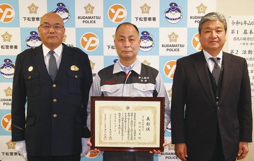 左から大浴署長、古田支店長、古川所長(下松署にて)
