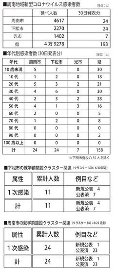 山口県などは6月30日、新型コロナウイルスに193人が感染したと発表した。周南3市では、周南市が24人、下松市も24人、光市が7人。累計は周南市が4,617人...