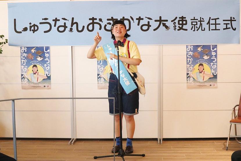 主催者の県漁協周南統括支店の藤村和義支店長は「山口県漁協でおさかな大使を任命するのは周南統括支店が初めての試み。これからの漁業の振興、地域の発展にも皆様のご協力をお願いしたい」とあいさつした。