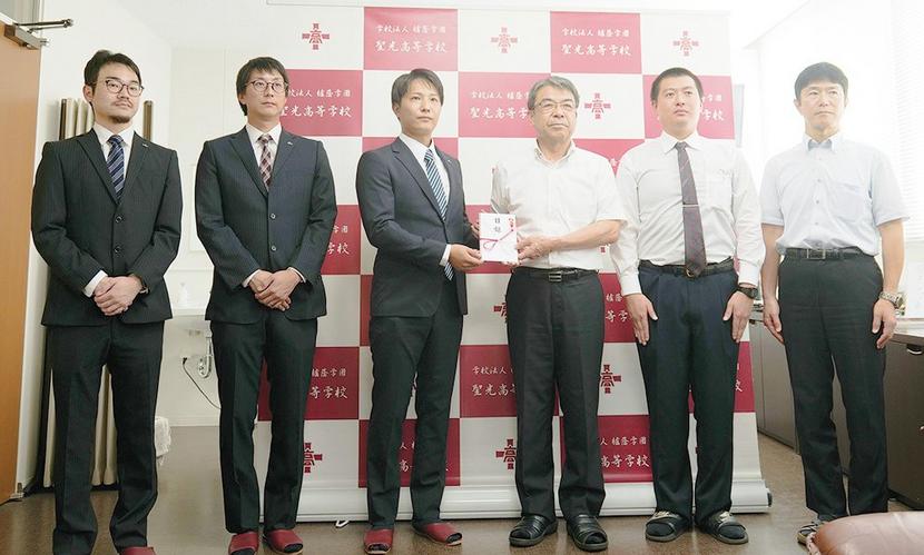 下松市東海岸通りで板金加工を手掛ける㈱山下工業所(山下竜登代表取締役)が光市の聖光高(廣川晋校長)に 25トン自動プレス機を贈り、2日に贈呈式が開かれた。 ...