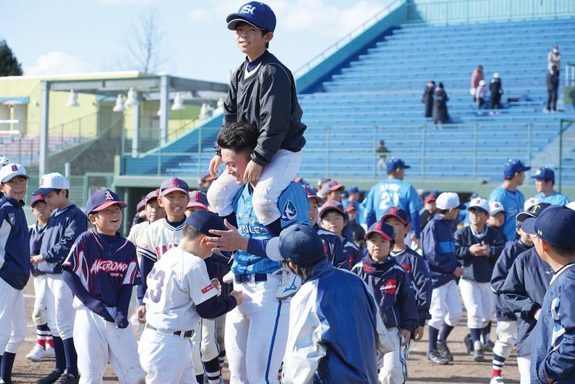 光市と周南市に本拠地を置く日鉄ステンレス硬式野球部(山口シーガルズ)が周南市の津田恒実メモリアルスタジアムで7日、両市の野球スポーツ少年団に所属する児童らに野...