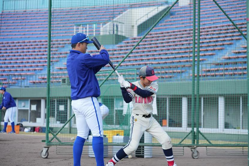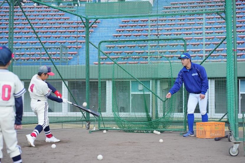 バッティングを教える林選手