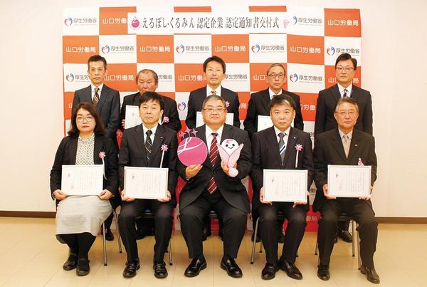 山口労働局は9日、女性活躍推進法に基づく認定(通称「えるぼし」)企業と次世代育成支援対策推進法に基づく認定(通称「くるみん」)企業として新たに認定した8社に対...