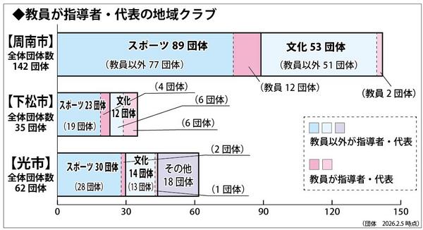 国のガイドラインに沿って2026年度をめどに全国的に中学校部活動を地域クラブでの活動に移行する「部活動地域展開」は、来年度から周南3市でも本格的に始動しようと...
