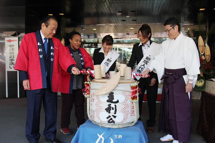 左から山縣社長、ホールさん、川口さん、家永さん、黒神宮司