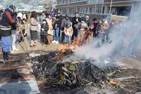 【周南市】雪の中でどんど焼き ぜんざいの振る舞いも