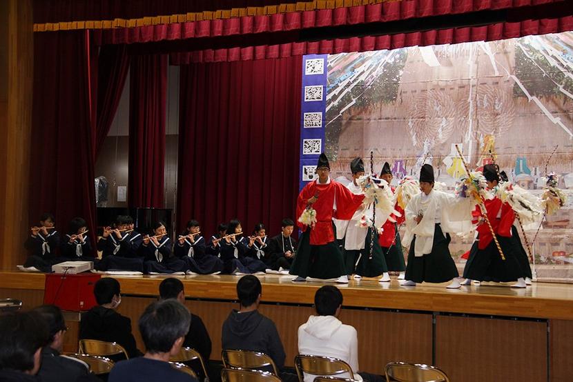 三作神楽を上演する生徒