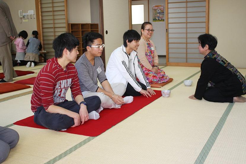 お茶会を体験する留学生