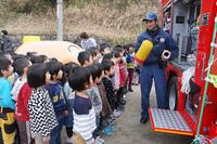 【周南市】園児が消防車を見学 明照幼稚園・防火カルタ大会も