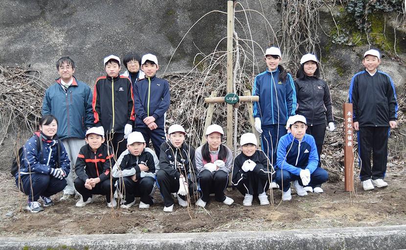 周南市の島地川ダムの高瀬湖湖畔に24日、近くの和田小(山野俊江校長)の6年生12人が卒業を記念してシダレ桜1本と、一人1本ずつアジサイを植えた。 この植樹は...