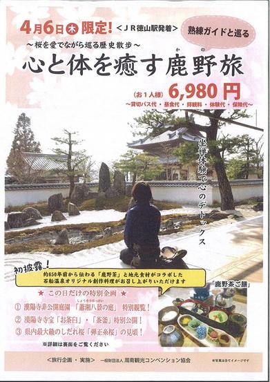 周南観光コンベンション協会(原田康宏会長)は4月6日に周南市鹿野の県内最大級のしだれ桜、弾正糸桜や、漢陽寺の非公開の庭園の特別観覧などもあるバスツアー「桜を愛...