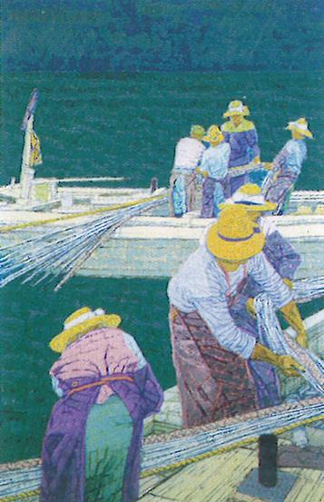 尾崎の「瀬戸内のいわし網漁夫」1970年
