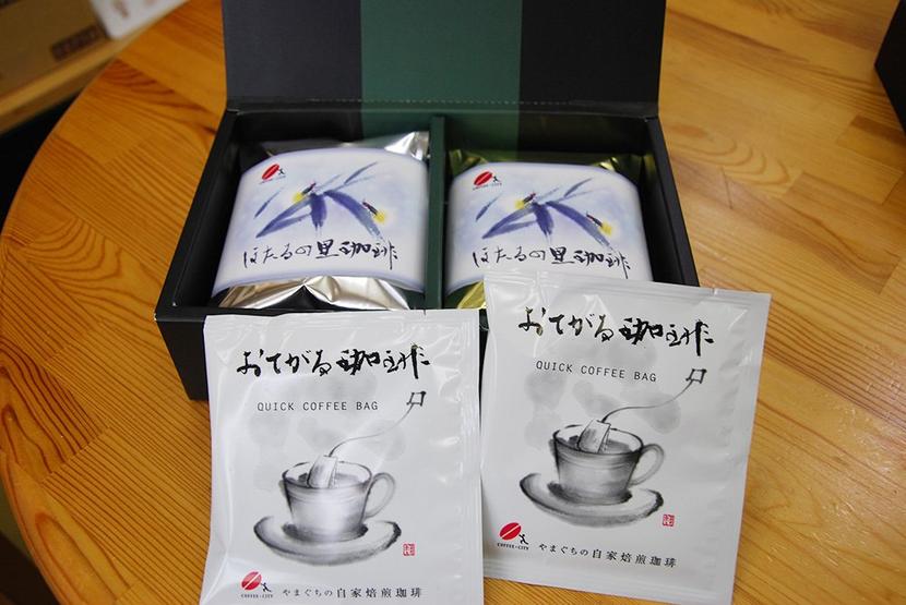 ティーバッグ式で簡単にコーヒーの本格的な味が楽しめる「おてがる珈琲」と、ホタルの名所、周南市長穂に焙煎(ばいせん)室を構えていることにちなんだ「ほたるの里珈琲...