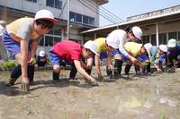 【下松市】地域の人と校内田で田植え 豊井小・児童が収穫まで体験