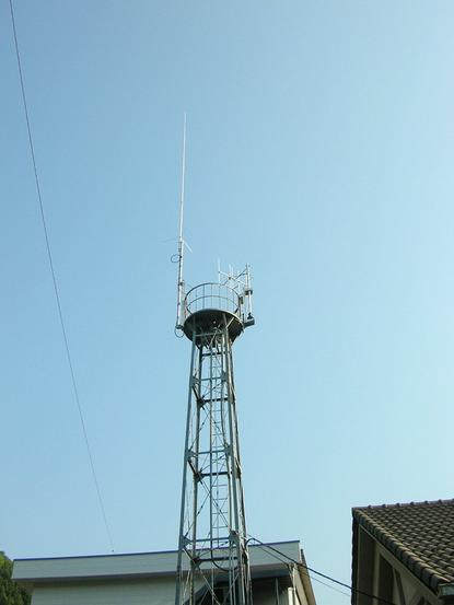 サイレン塔に立てられたアンテナ=写真はいずれも主催者提供